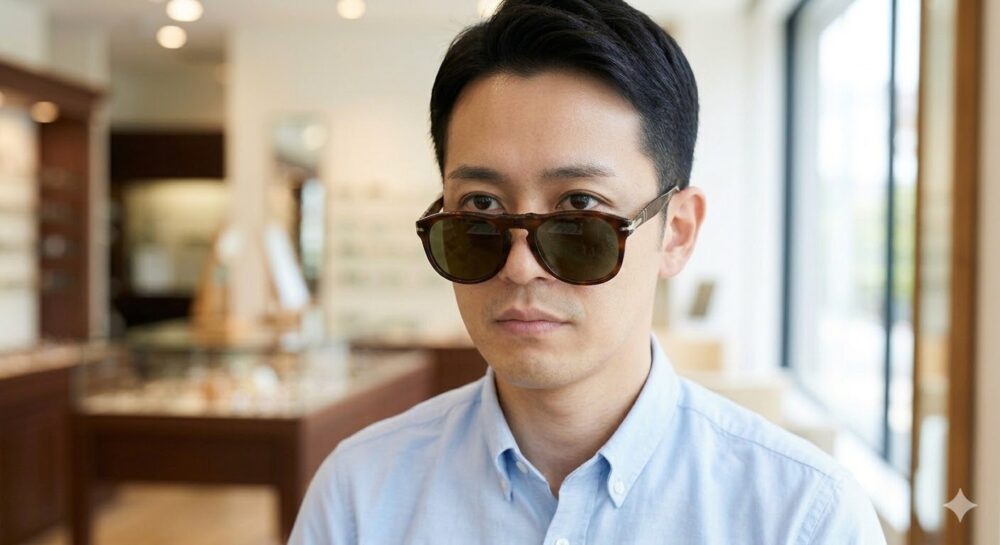 「レイバン」や「オリバーピープルズ」のように、アジアンフィットの設計がされているサングラスであれば日本人でも掛けやすいのですが、ペルソールは全く日本人向けにサイズ設計されておりません。